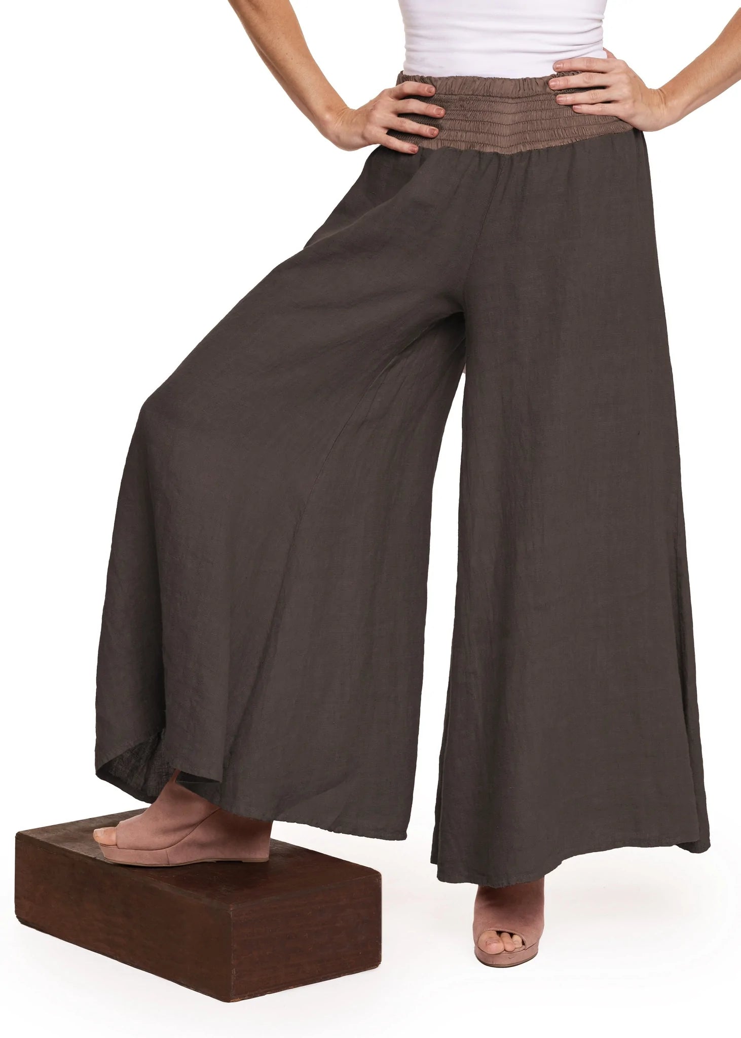 Material - 100% Linen, excluding waistband.