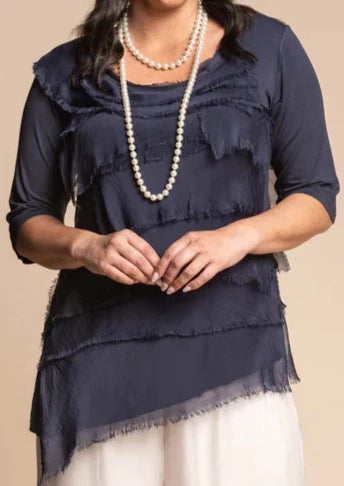 Indulge in elegant sophistication with the Fleur Silk Top. Crafted from the finest materials, its structured neckline creates a graceful drape around the shoulders, while the mid-length sleeves offer a distinctive edge, perfectly suited for pairing with the Fifi Skirt or Gia Pant for a tailored and timeless look. An effortless statement-maker, this stylish top will complete any ensemble, allowing you to express your style with effortless ease.