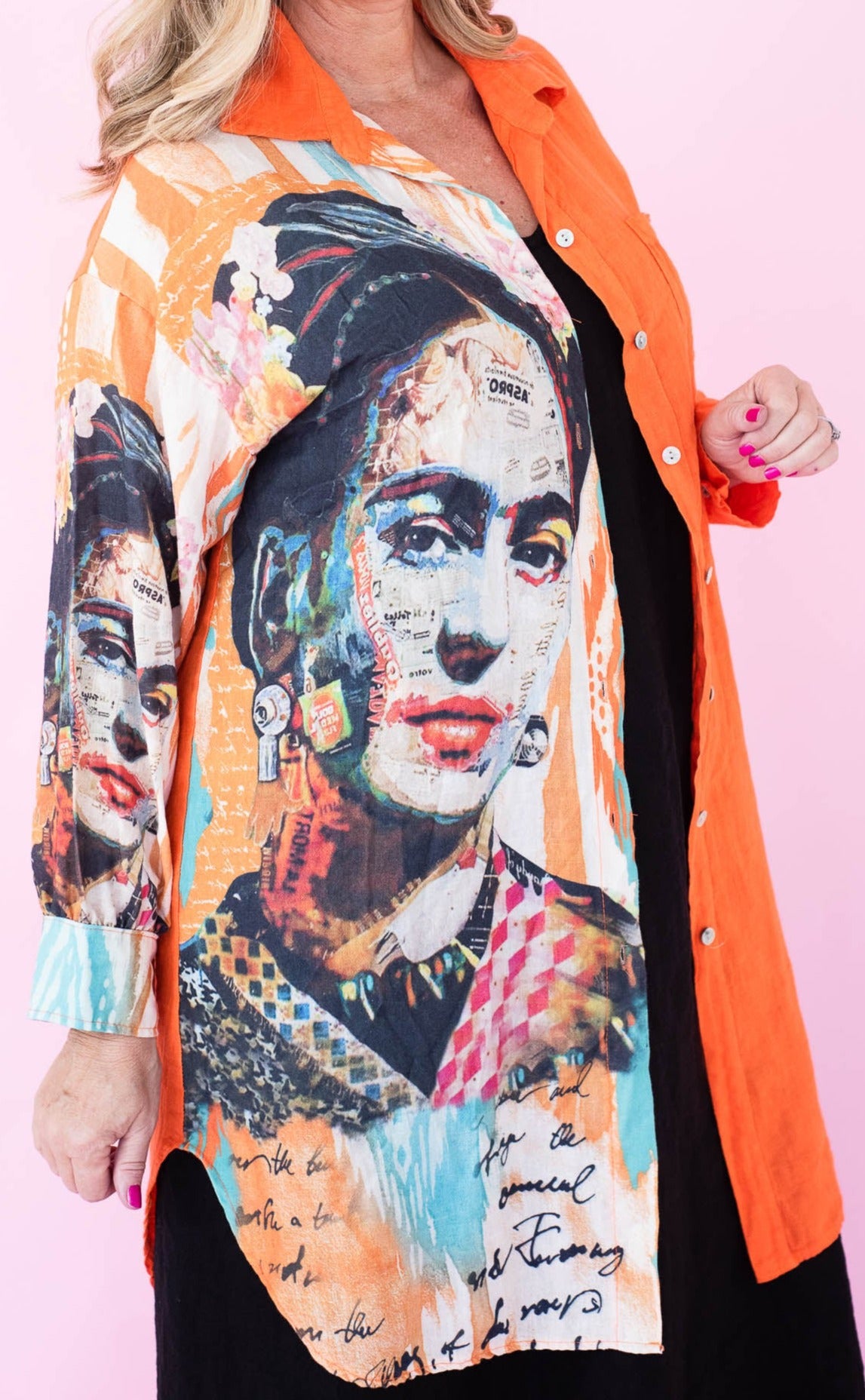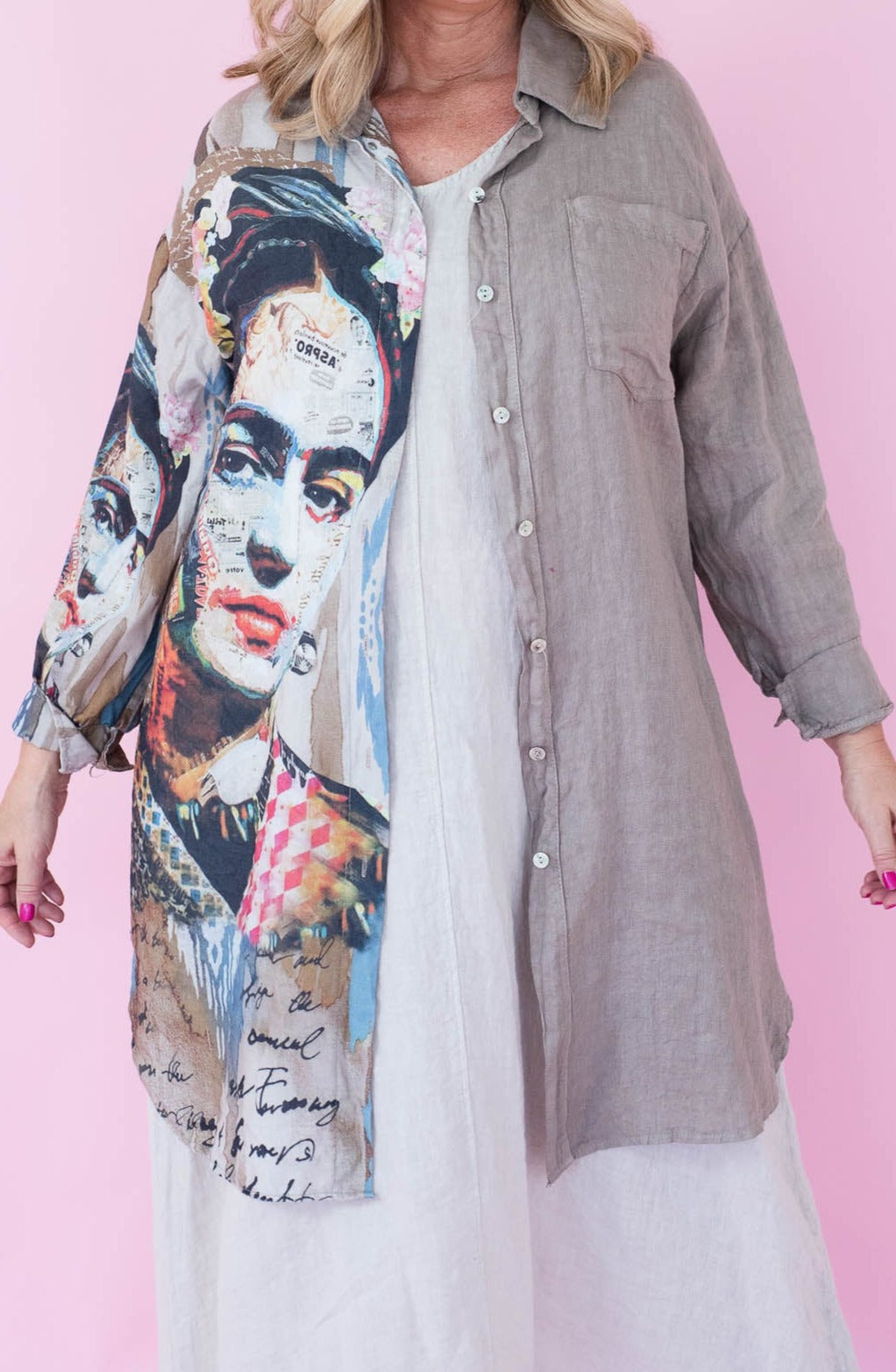 Frida Kahlo was an inspiration to many. A true original spirit with a sense of self we can only dream of. Her style, the way she took on the world and the energy and colour she brought into the world is truly remarkable. If we could take this icon and wear her in a 100% linen shirt to remind ourselves of our own creative energy and unique gifts then why wouldn’t we? Here Donna has created a classic shirt maker design and stylised it to inspire and uplift your wardrobe this season.