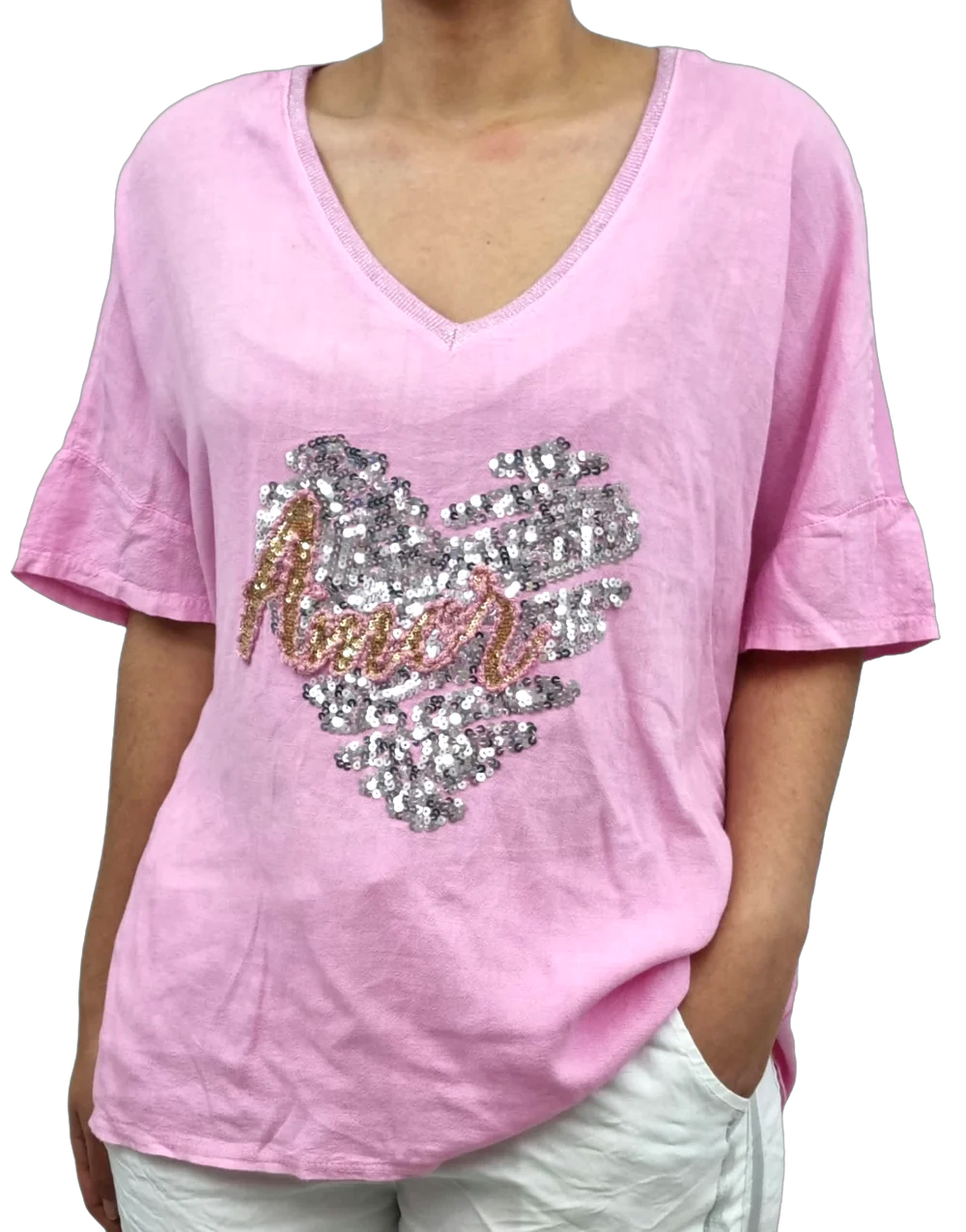 This HEART linen top is sure to make a statement! With its beautiful sequin detail, you'll turn heads wherever you go. Crafted with soft linen for unparalleled comfort, you'll be looking and feeling your best all day long. What are you waiting for? Get your HEART linen top today!