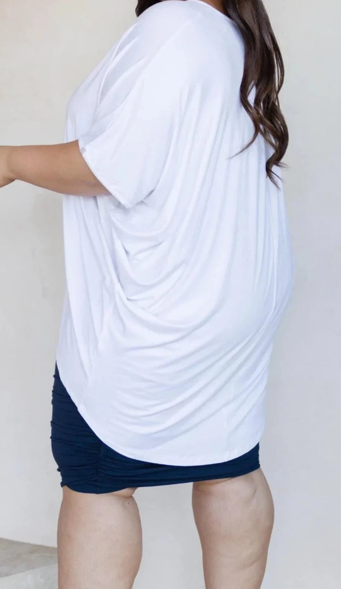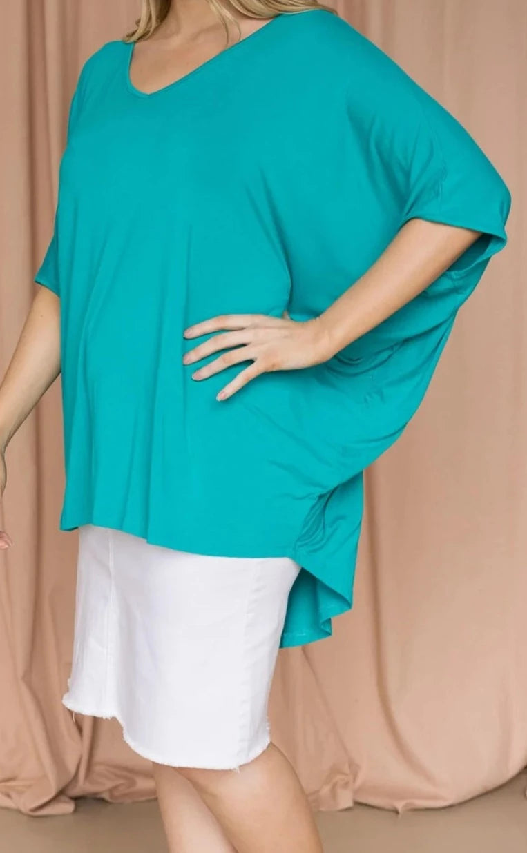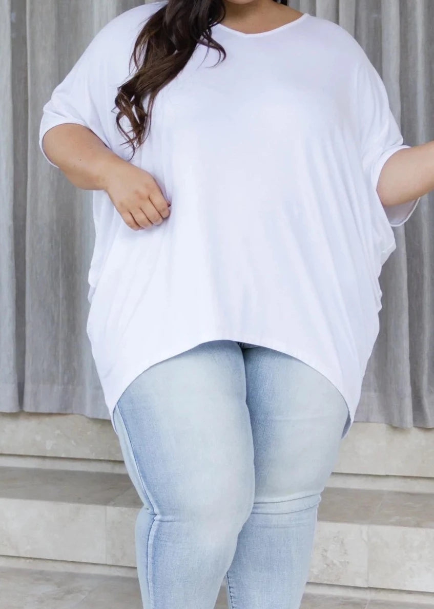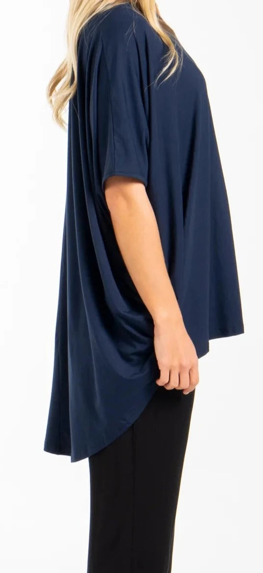 The Hi-Low Miracle Top features a feminine draping style with batwing sleeves, coupled with a flattering V-Neckline. The soft and breathable fabric in Plum is made from sustainable bamboo fibres.