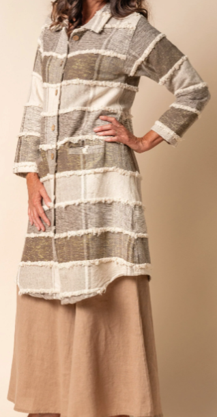 Elevate your winter style with the Remy Jacket. Featuring a chic panel design, faux wood buttons, and subtle lurex accents, this coat exudes elegant modern charm. A sophisticated collared neckline adds both comfort and distinctive flair, making this jacket the perfect choice for any winter look.