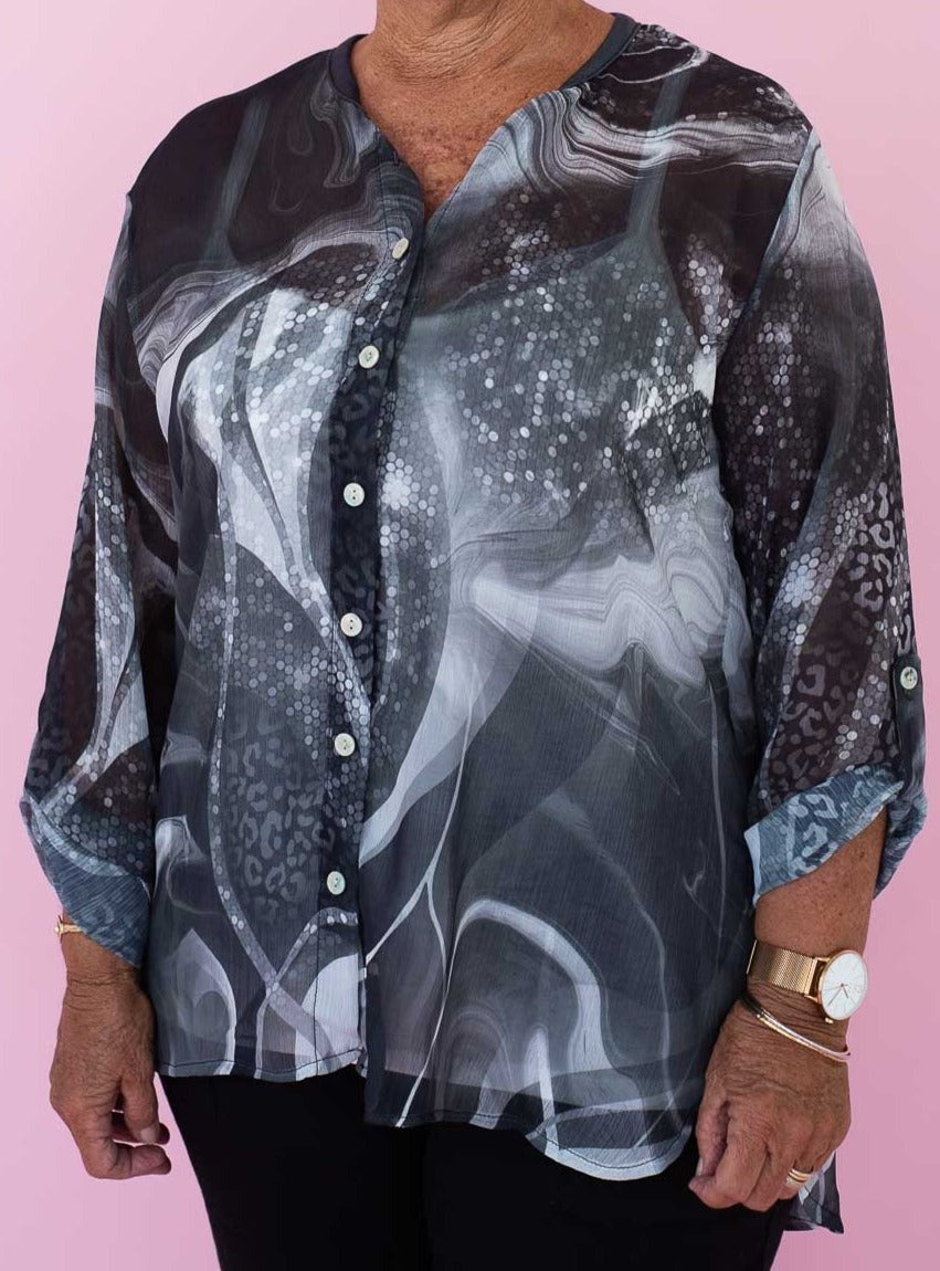 The classic shirt shape gets an update with a unique print though.