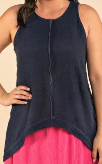 Indulge yourself in the chic, drapey silhouette of the Marcie Top. Revive your wardrobe with this timeless piece that can be effortlessly styled for both casual days at the beach and swankier summer brunches. Its silky fabric pairs elegantly with classic denim shorts and your beloved wedge sandals.
