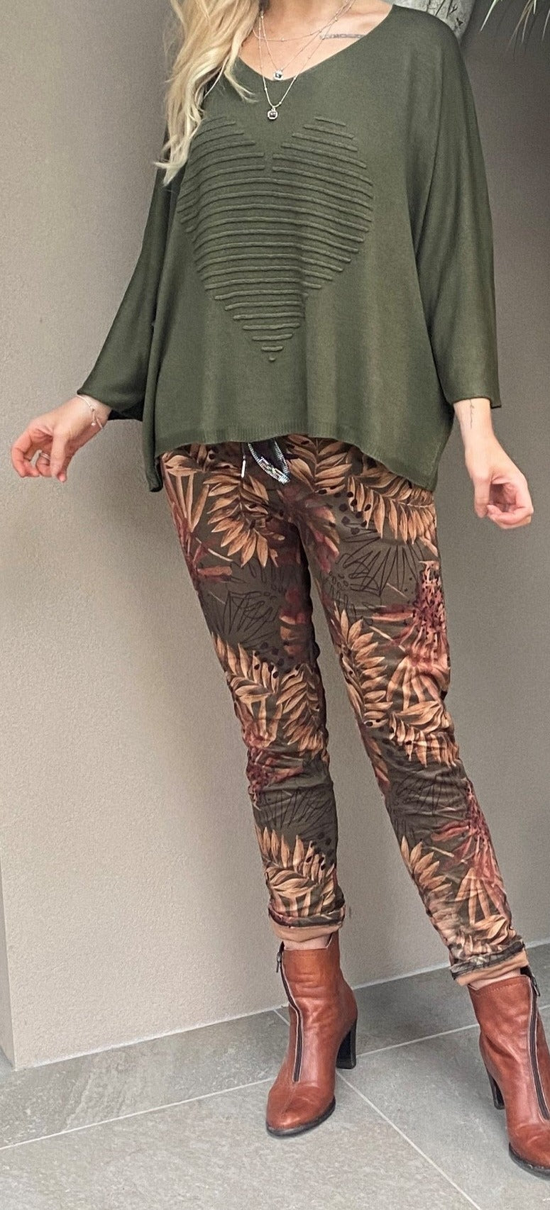 Harmonie Collections AUTUMN LEAF CURVY AND MID SIZE - ITALIAN STRETCH PANTS WITH FAUX SUEDE FEEL.