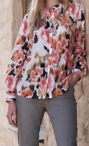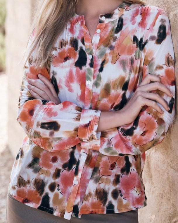 Looking for something unique and stylish? Check out our exclusive Muted Flower Print Shirt! This shirt features a button-through front, button cuff with puff sleeves, and round neck. It's made of 100% cotton for a comfortable fit.