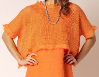 The Hazel Top is a stylish cropped cotton piece crafted from open weave netting, perfect for a light and airy feel. It features delicate fringing along the scoop neckline, short sleeves, and hem, adding a touch of playful elegance. This top is versatile enough to be worn on its own or layered over a sleeveless piece, making it a flexible addition to your wardrobe.