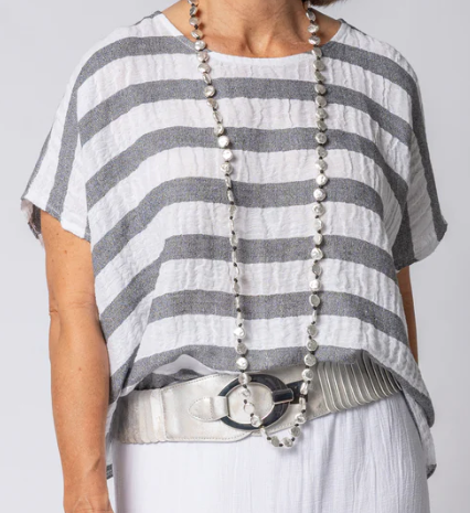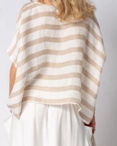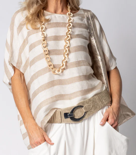 Designed with both form and function in mind, the Mikayla Linen Top in Onyx and Faiza Linen Top in Desert offer excellent versatility for everyday styling. The easy drape and understated stripes mean it pairs seamlessly with tailored trousers, casual denim, or layered under knitwear on cooler evenings. Details such as: